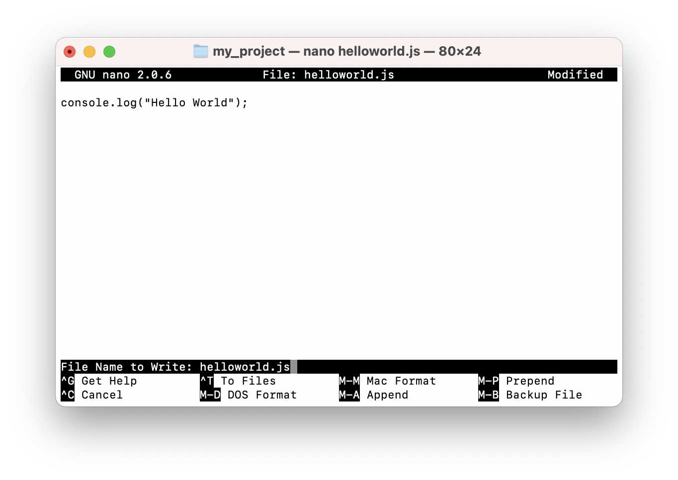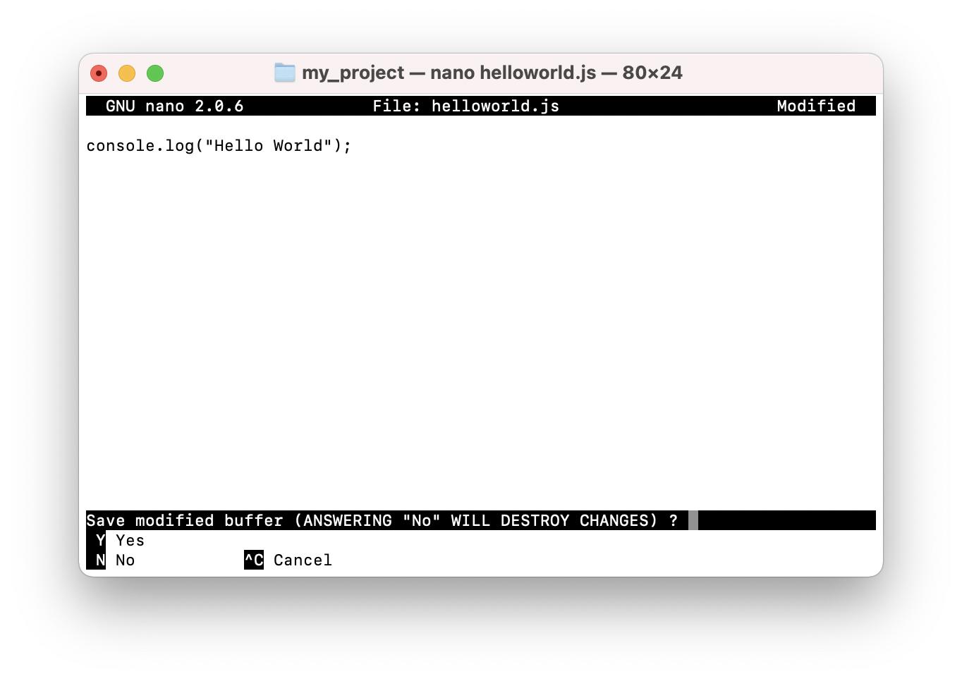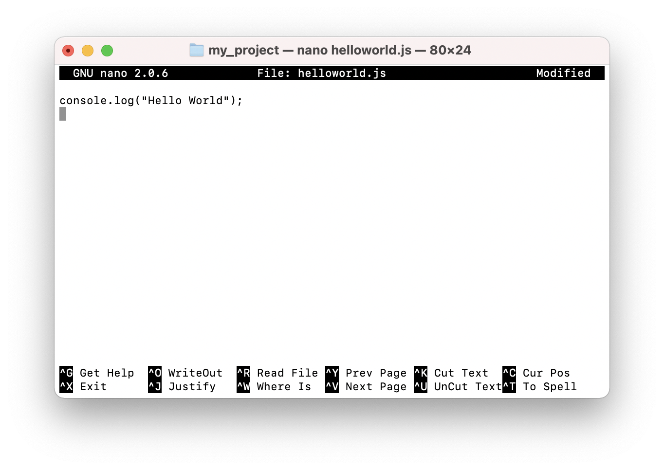 nano helloworld.js